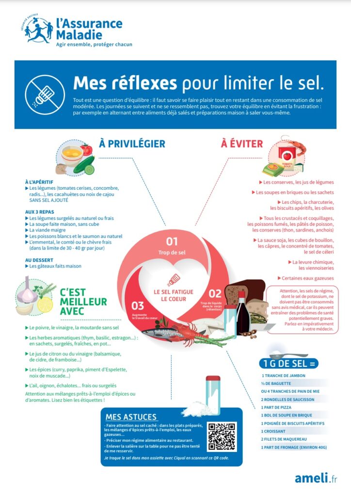Quand on est insuffisant cardiaque, le sel retient l’eau dans votre corps, ce qui force votre cœur déjà affaibli à travailler plus dur pour pomper ce surplus de liquide. C’est pour cette raison qu’il est important de limiter votre consommation de sel.